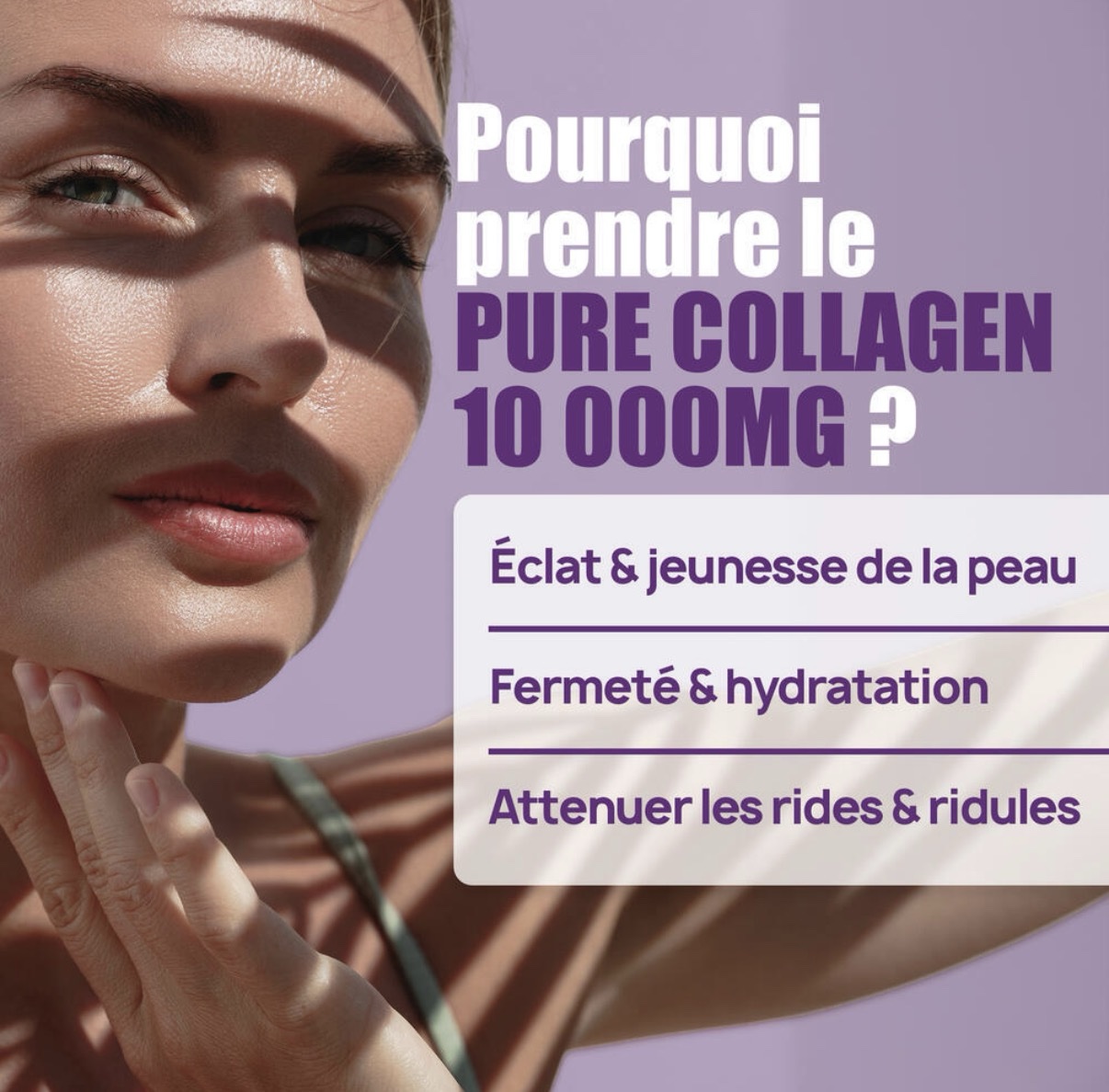 مكمل كولاجين بحري بتركيز عالي 10,000mg، مصمم لدعم صحة البشرة والشعر والأظافر من الداخل. يتميز بتركيبة سائلة سهلة الامتصاص، تساعد على تحسين مرونة البشرة وترطيبها وتقليل مظهر الخطوط.